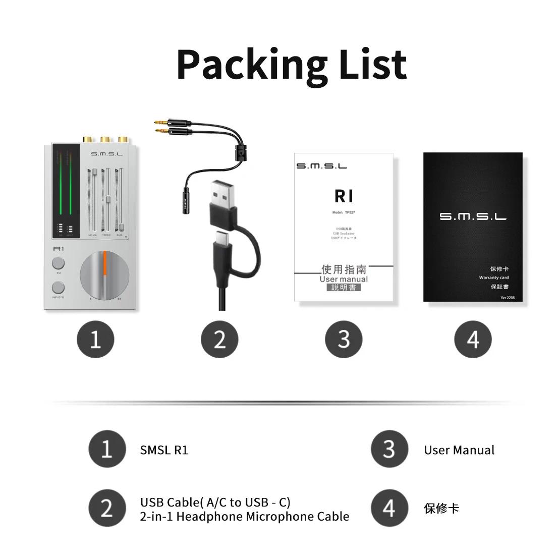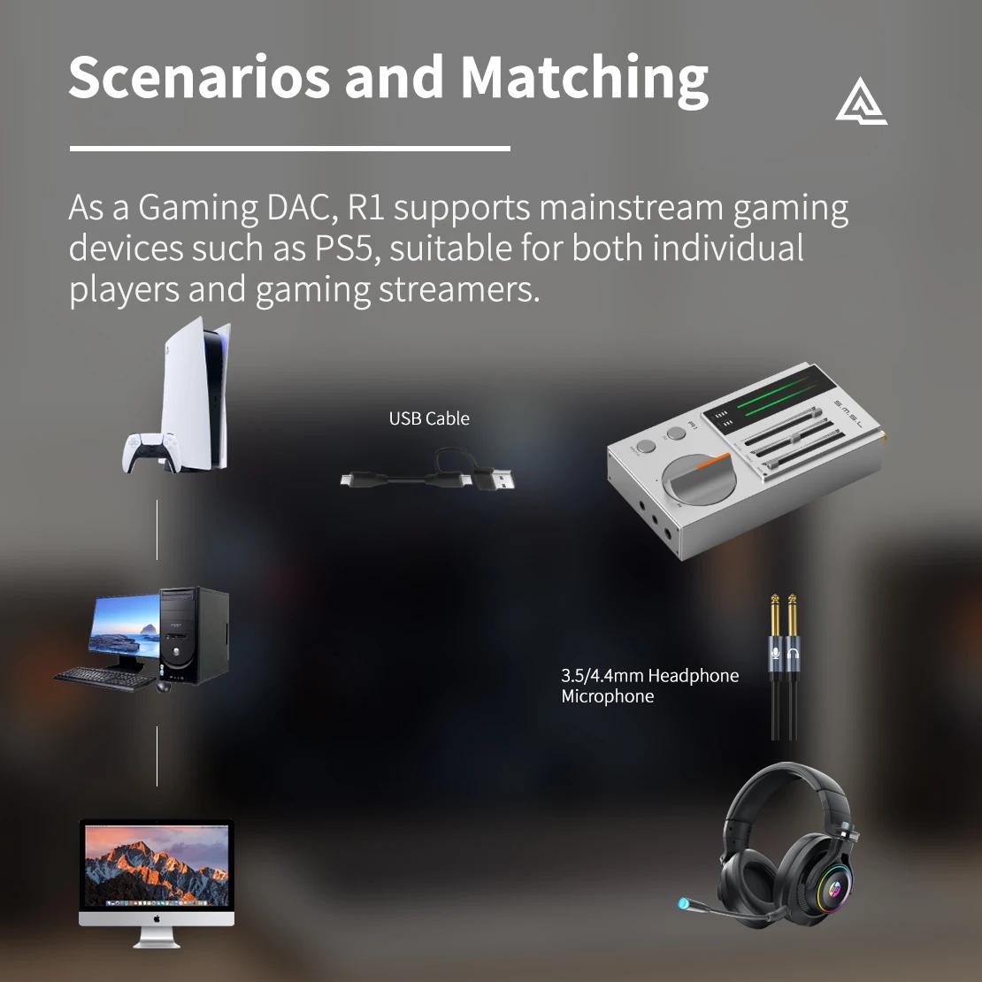 SMSL Black R1 Mini Portable HiFi Gaming DAC Headphone Amplifier Support Independent EQ Adjustment