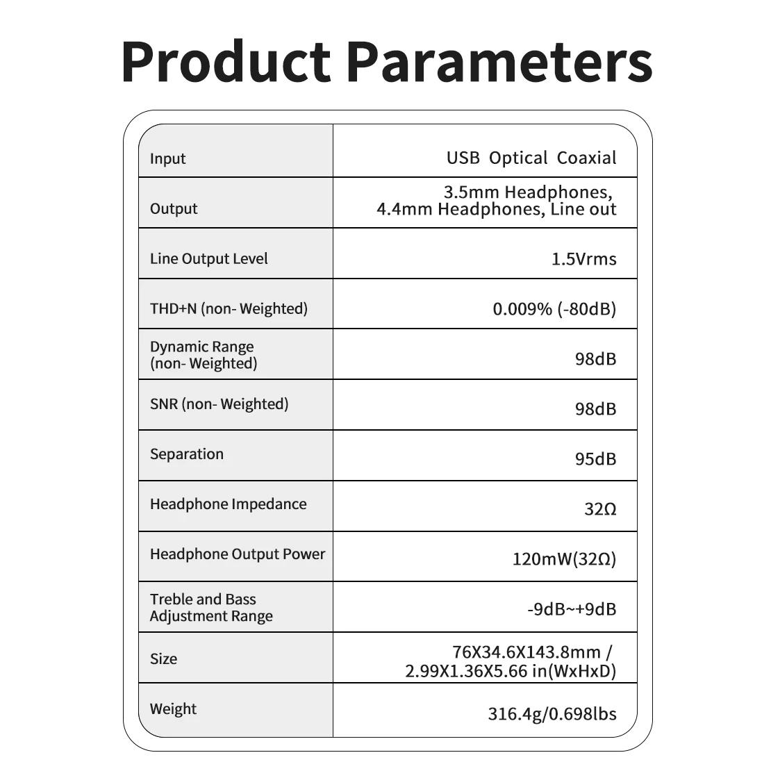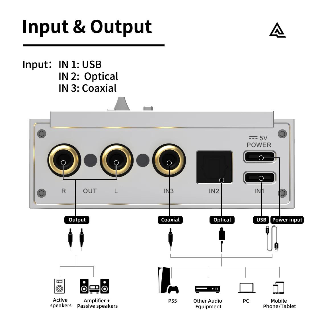 - Supports mainstream audio formats via USB, optical, and coaxial inputs.