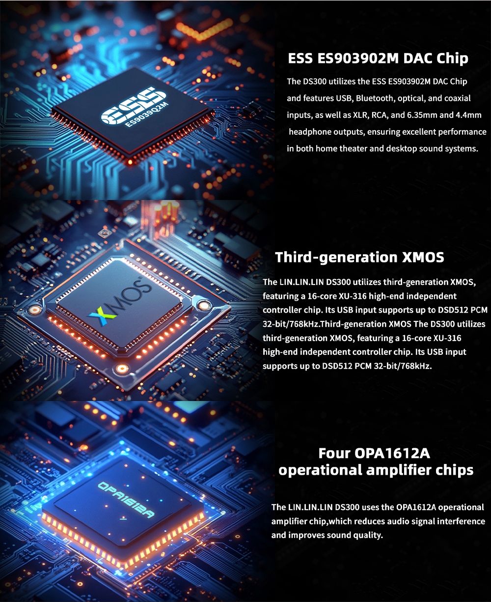 - The 3rd generation XU-316 for XMOS, supporting PCM up to 32-bit/768kHz and DSD up to DSD512.