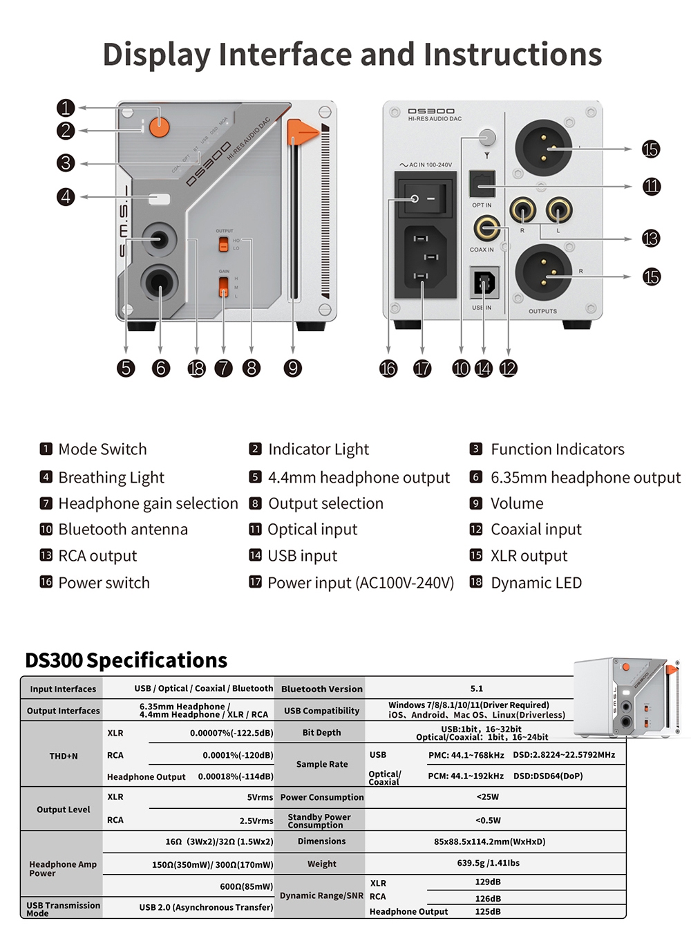 - All input ports (excluding Bluetooth) support DSD transmission, with coaxial and optical supporting DoP64.
