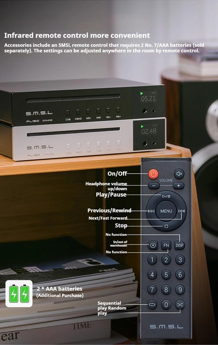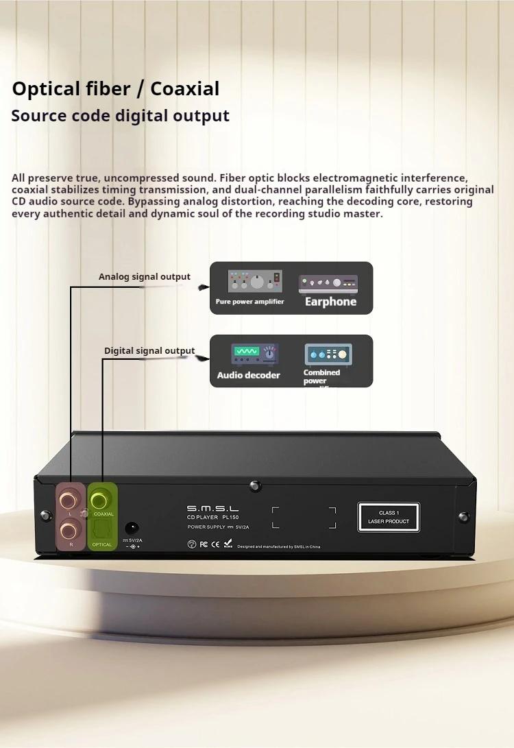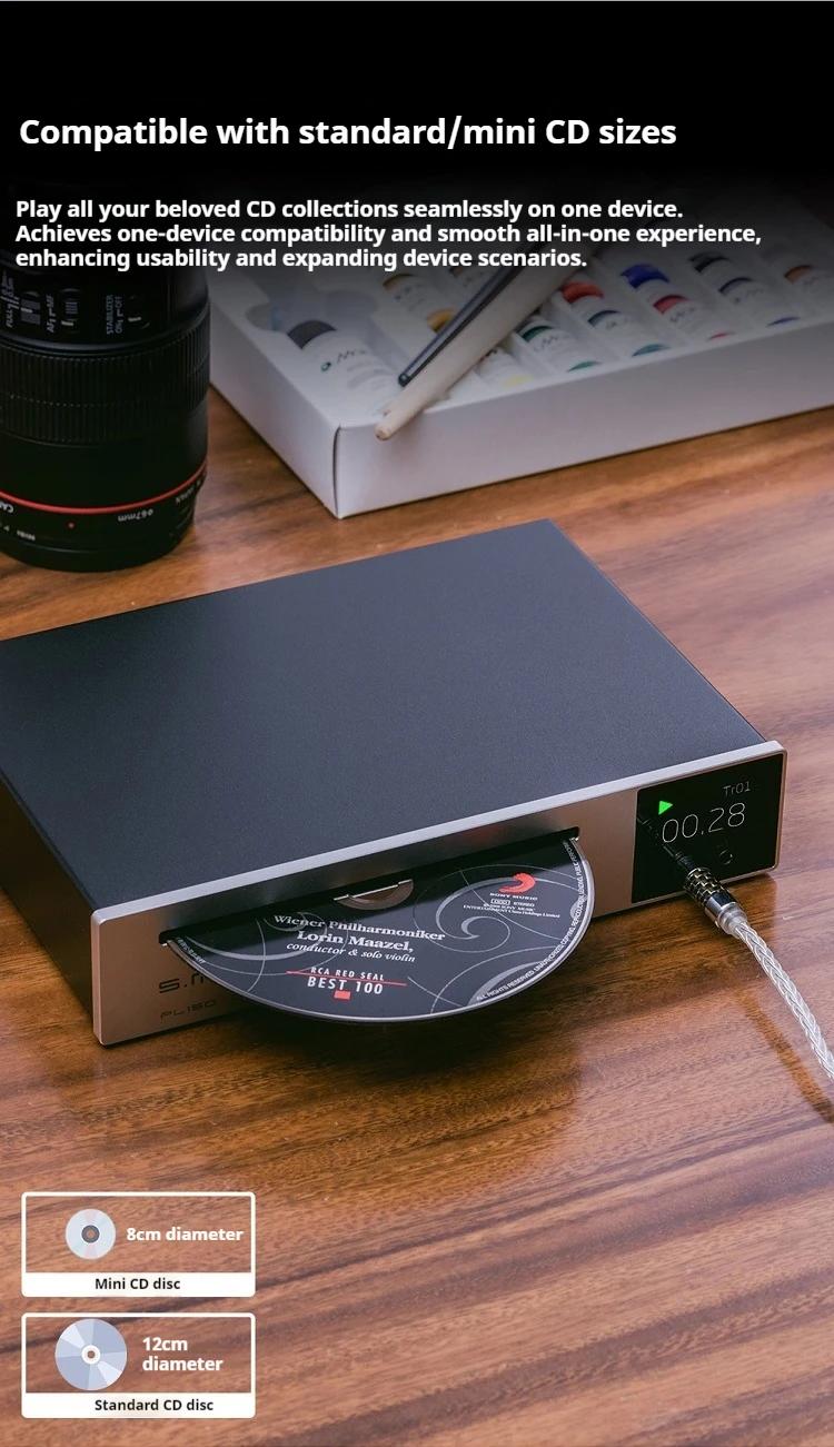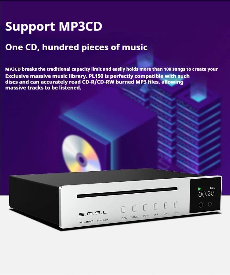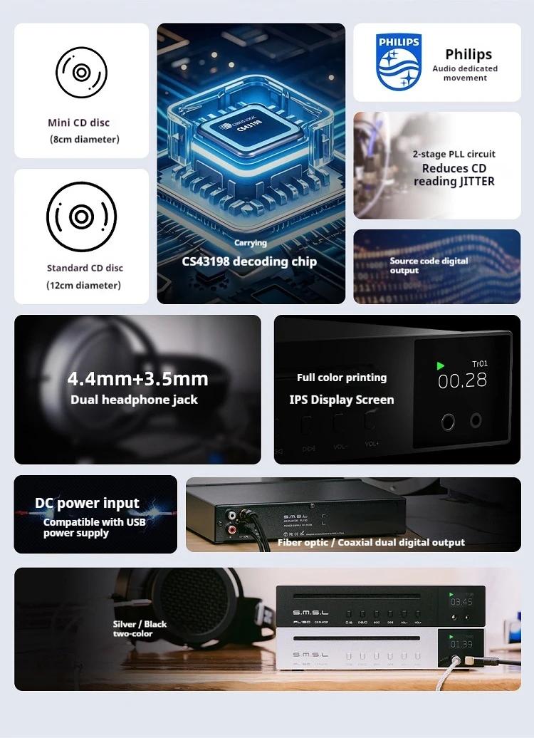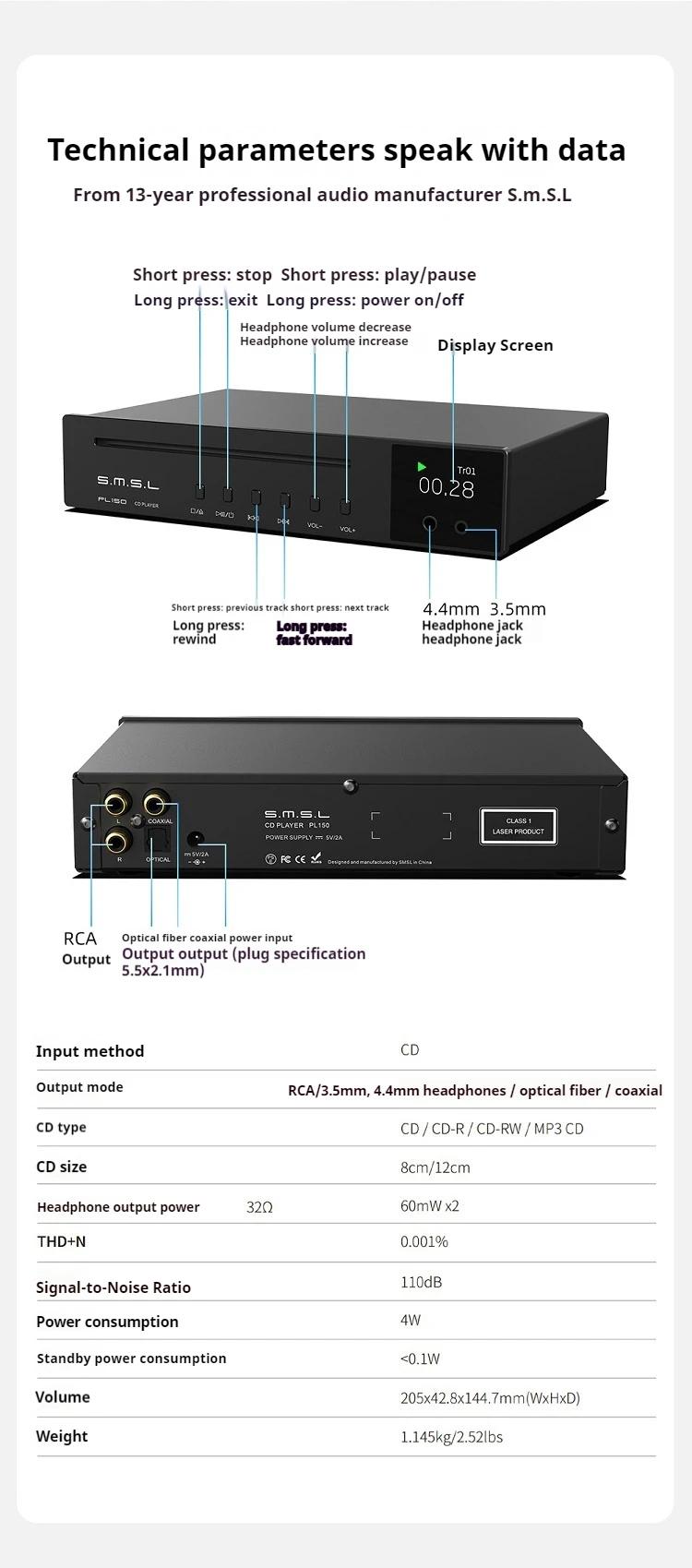 SMSL Silvery PL150 HiFi Professional Stereo Lossless CD Player Built-in CS43198 Decoding Chip 4.4mm+3.5mm Headphone Amplifier