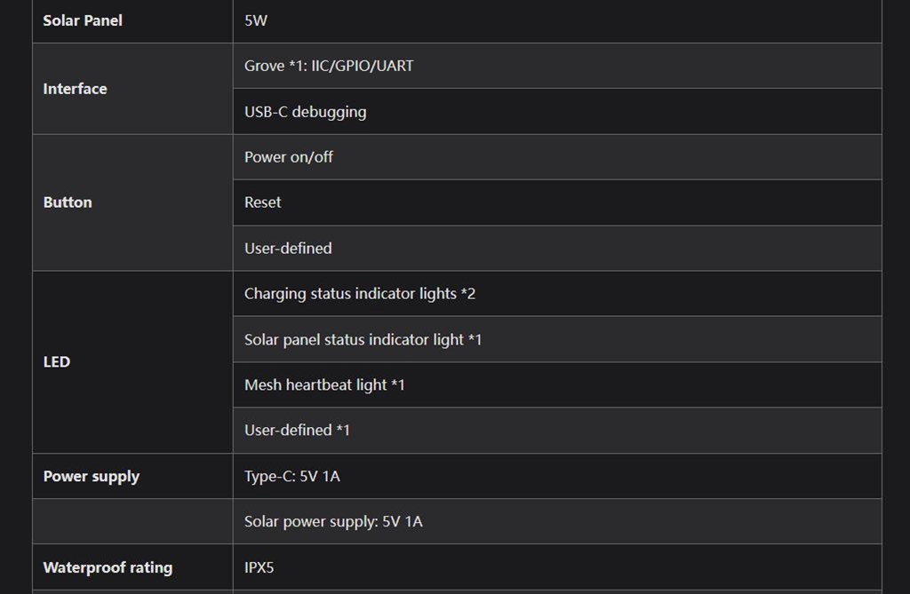 - It is an economical solar-powered comms node or repeater based on Meshtastic, integrates the XIAO nRF52840 Plus main controller, the Wio-SX1262 LoRa module. It is specifically designed for areas without network coverage. It supports long-distance communication, precise positioning, and low-power operation. It's suitable for expanding network coverage in outdoor areas.