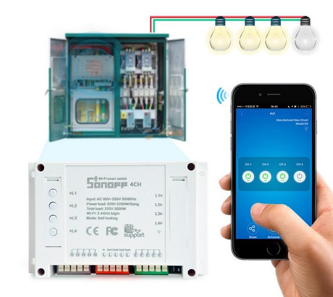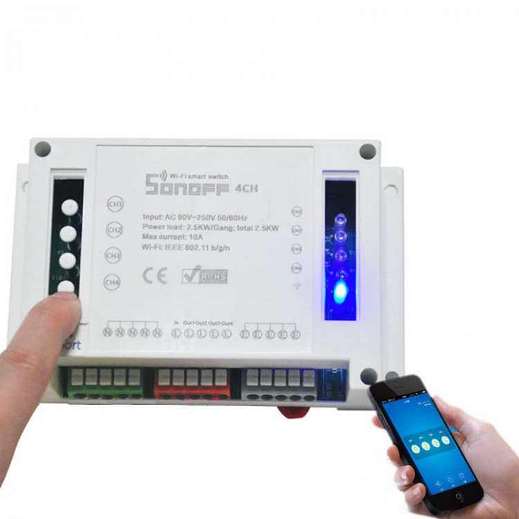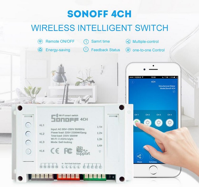 - Sonoff 4CH supports to connect and control 4 home appliances,which can be turned on/off separately by the buttons or iOS and- - Android APP EweLink.Owning a Sonoff 4CH means you have 4 Sonoff basic WiFi switches integrate together.
