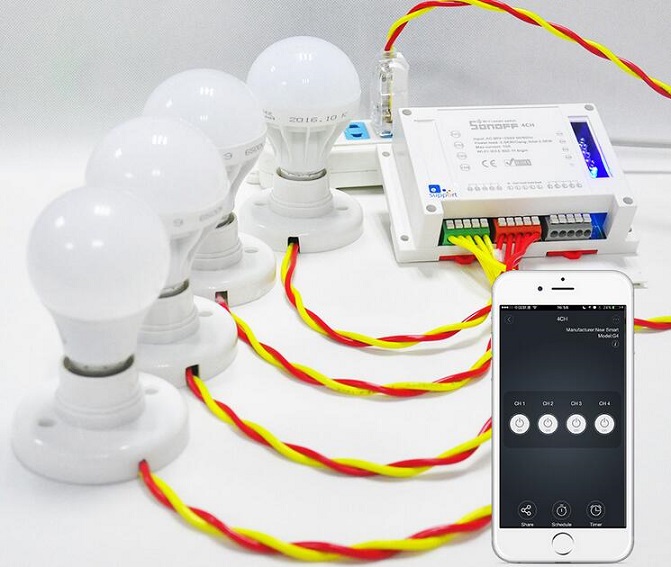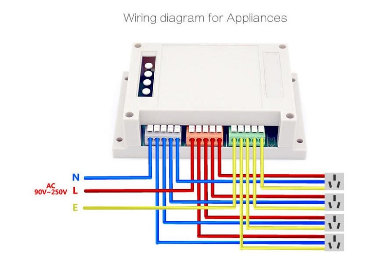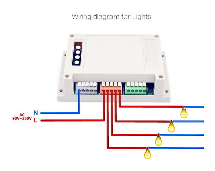 There are two kinds of wiring: one for connecting 4 lights,one for connecting with 4 home appliances.