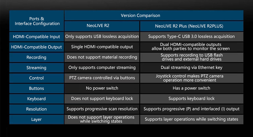 * With built-in storage, NeoLVIE R2 allows picture insertion without occupying any input channel, enabling users to insert different backgrounds during live streaming.