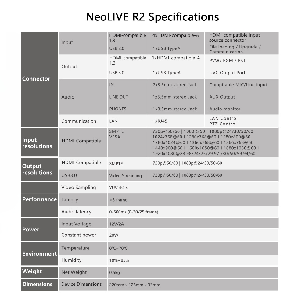 SPROLINK NeoLIVE R2 Live Streaming Video Switcher USB Acquisition & 1CH HDMI-Compatible Output