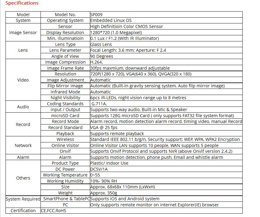 - Supports motion detection alarm, Phone push alarm, Email alarm and whistle alarm