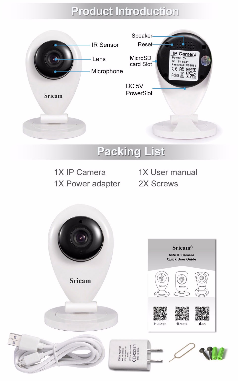 Sricam SP009 Wifi Wireless IP Camera 720P 1.0MP CCTV Security Cam Baby Monitor Motion Detection
