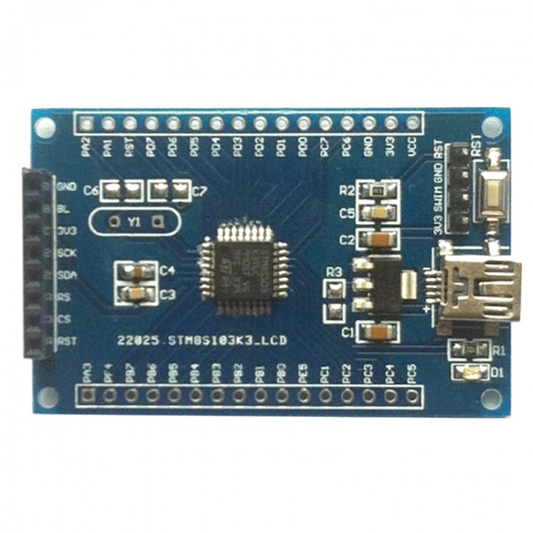 LC-STM8-103K3-DM onboard STM8S103K3T6.Pins of STM8S103K3T6 all elicit,in order circumscribed module easily. Obligate a SPI LCD port can connect LC-LCD-1.8 LCD module immediately.