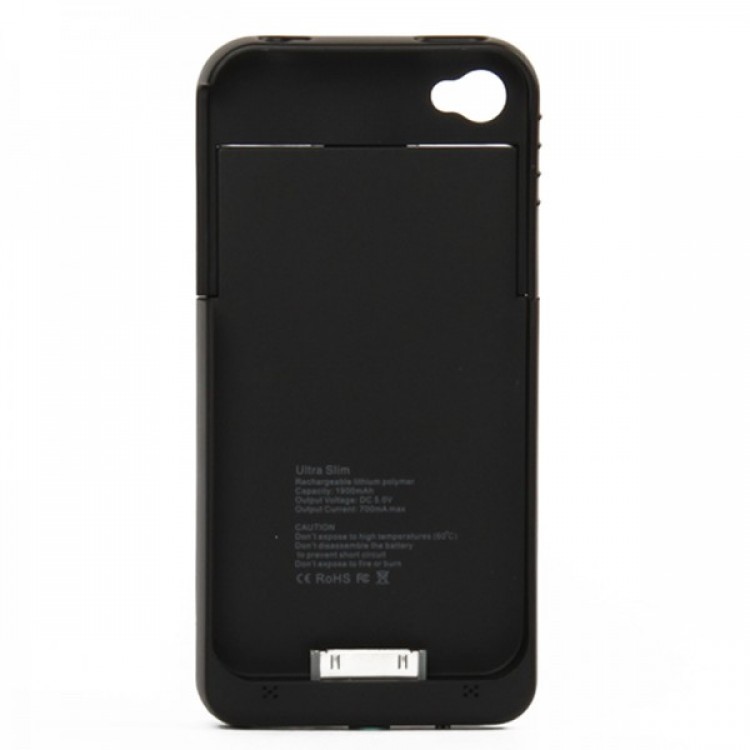Stylish 1900mAh Rechargeable External Backup Battery Case for iPhone 4 - Black