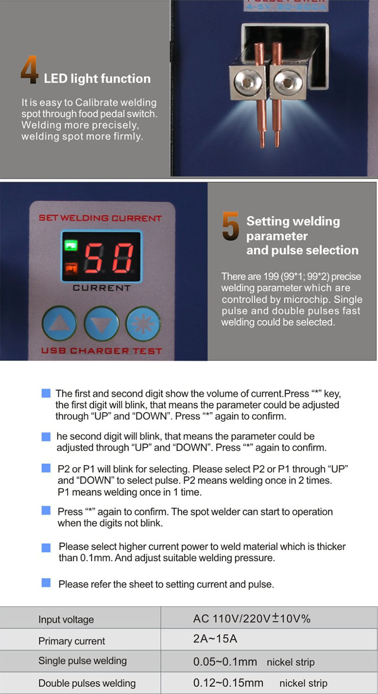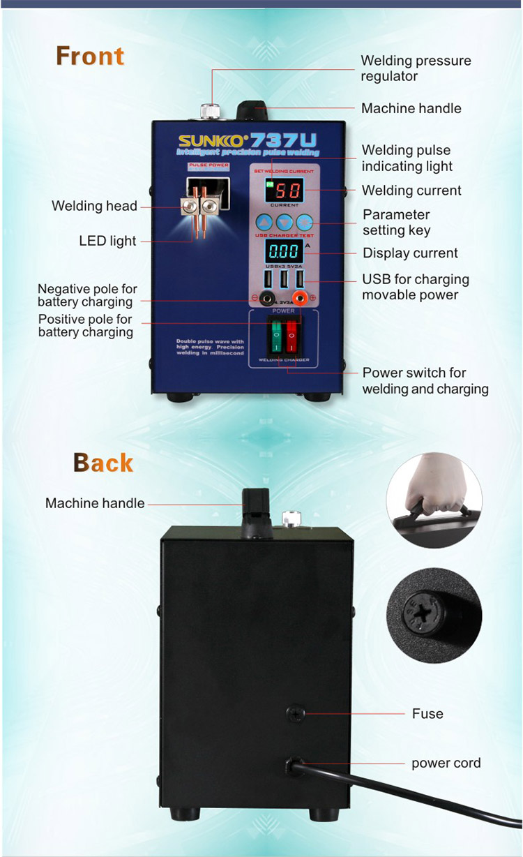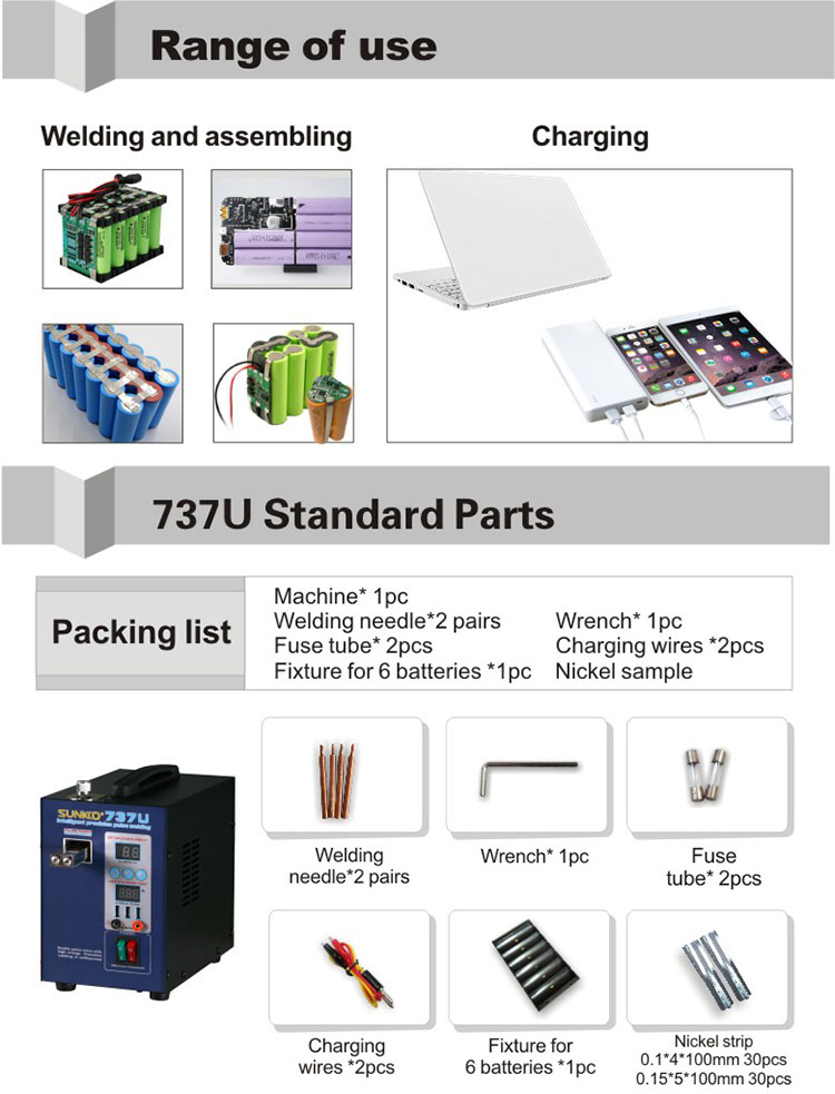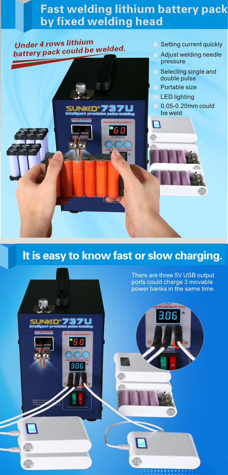 SUNKKO 737U Spot Welder 18650 Battery Spot Welder 220V/110V 2800W Digital Display