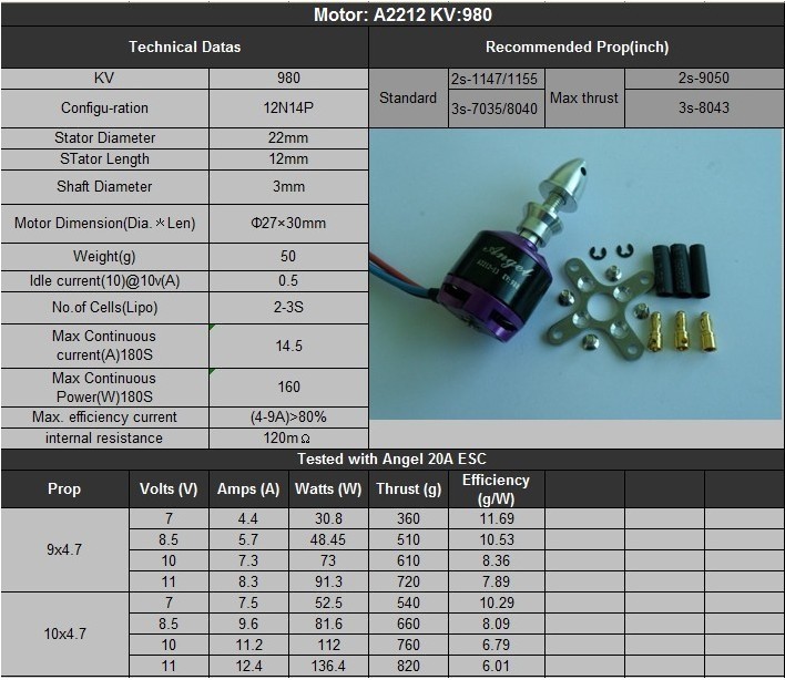 SUNNYSKY Angel A2212 2212-980KV Brushless Motor MultiCopter KK Multi-Copter Quadcopter