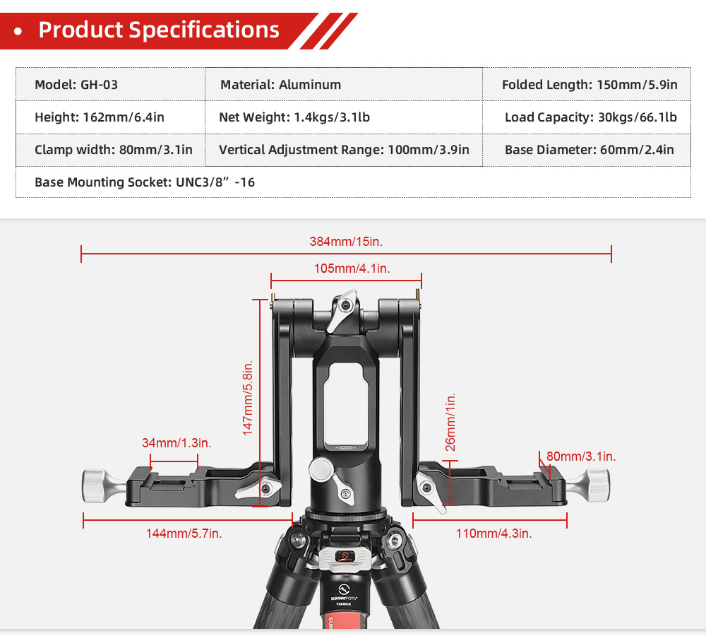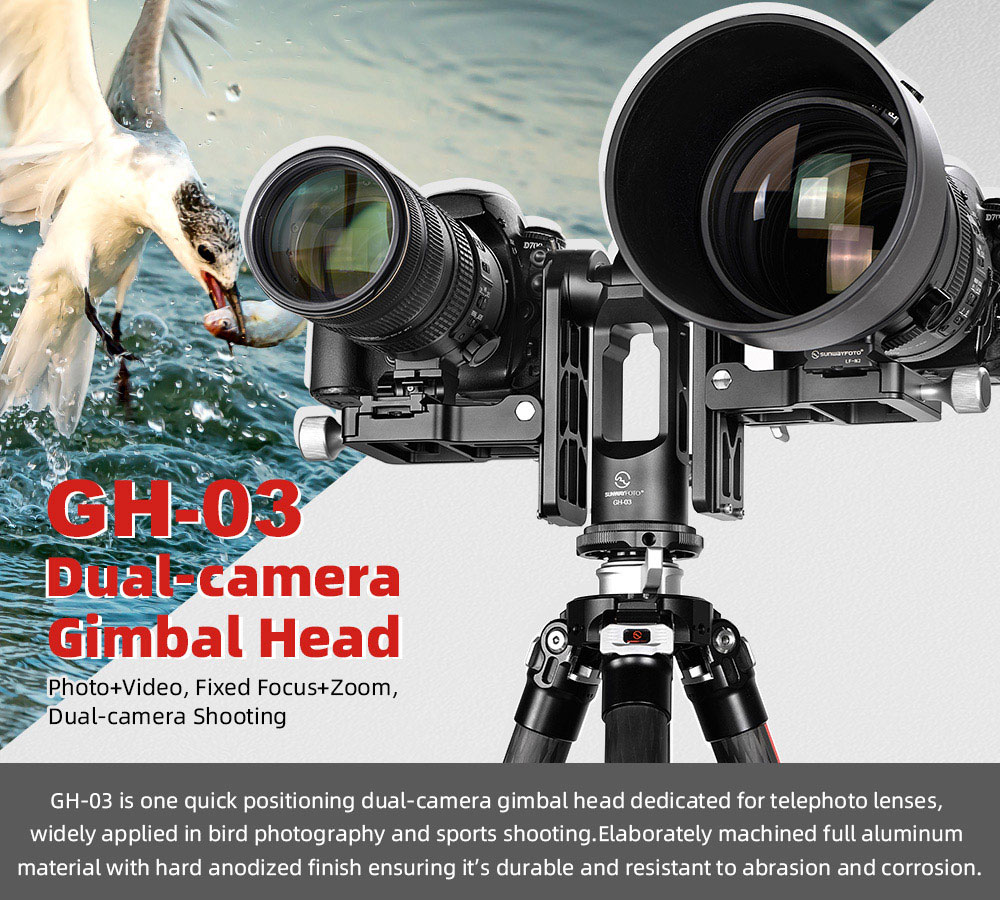 Sunwayfoto GH-03 Dual-Camera Gimbal Head With Load Capacity 30KG/66.1LB Assistant For Photographers