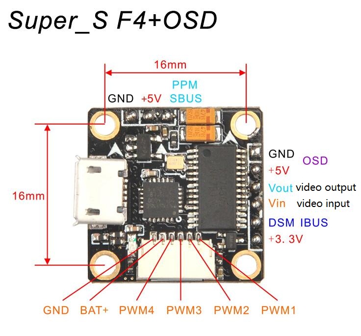 - Super_S F4 flight control is updated Super_S F3,small version Omnibus F4,Integrated Betaflight OSD,Betaflight GUI real-time real-time configuration OSD interface