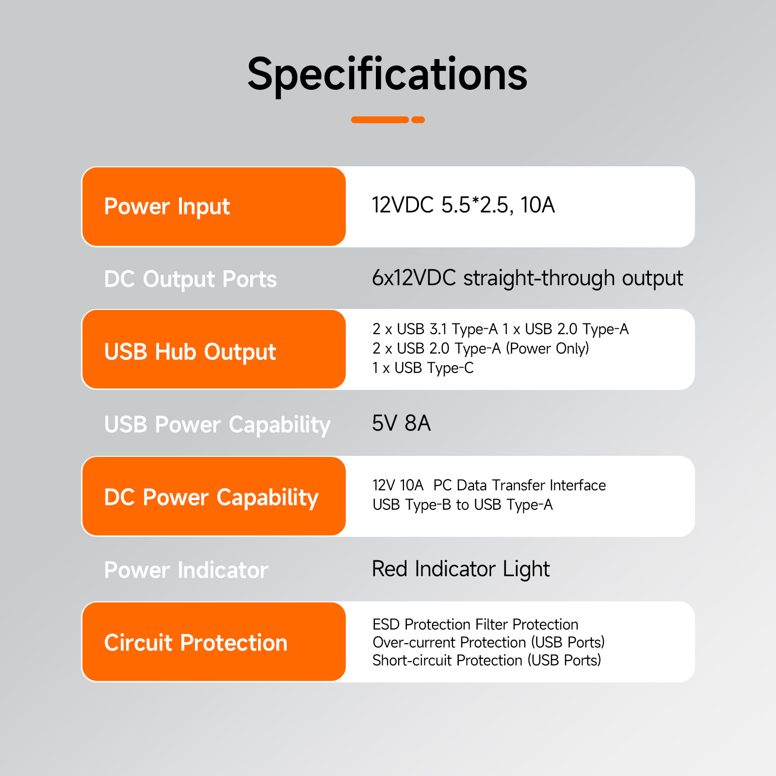 - USB hub output: 2 x USB3.0 Type-A, 3 x USB2.0 Type-A, 1 x USB2.0 Type-C