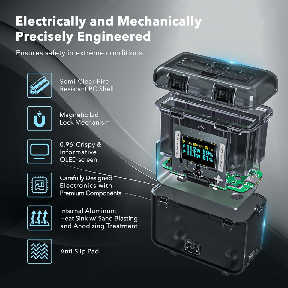 - Equipped with a 0.96-inch clear OLED screen that displays all the battery and charging information at a glance: charge status, charge/discharge power, voltage, current, battery health, cycle count, available capacity, full charge capacity, Celsius and Fahrenheit temperatures, and power capacity (available power).