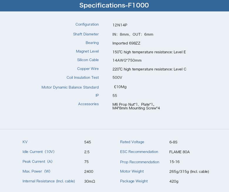 T-MOTOR F1000 KV545 Smooth Stable Resistant for Large Motor Racing FPV Drones Package List: -1 x T-MOTOR F1000 KV545 Motor