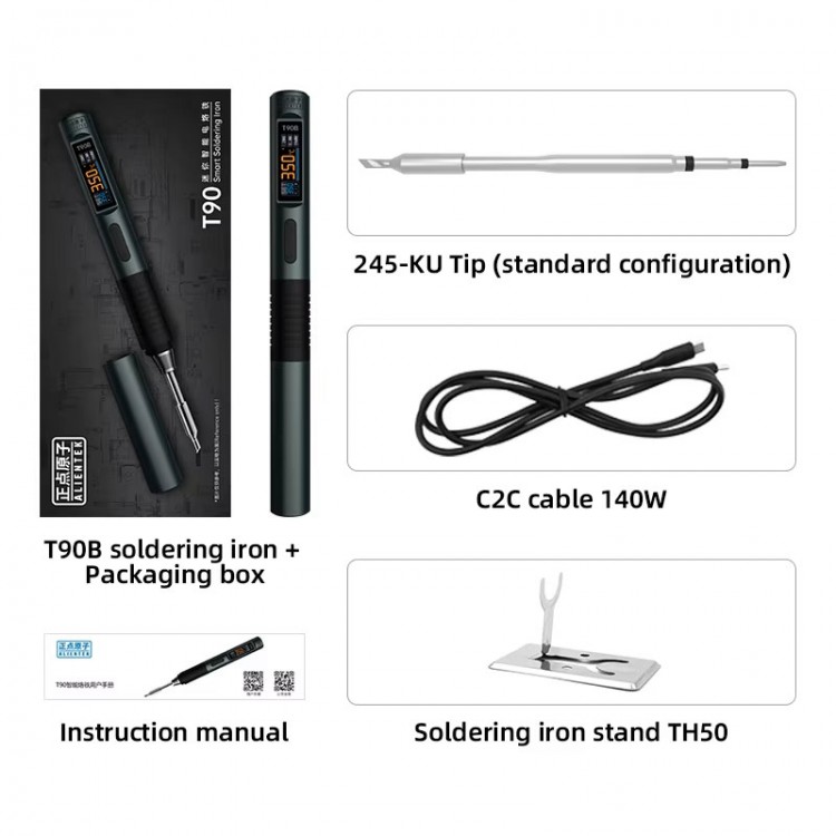 T90B (T245 Tip) Portable Intelligent Soldering Iron IPS LCD Screen 18-140W Constant Temperature Soldering Pen