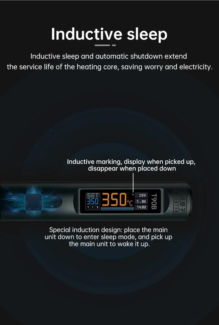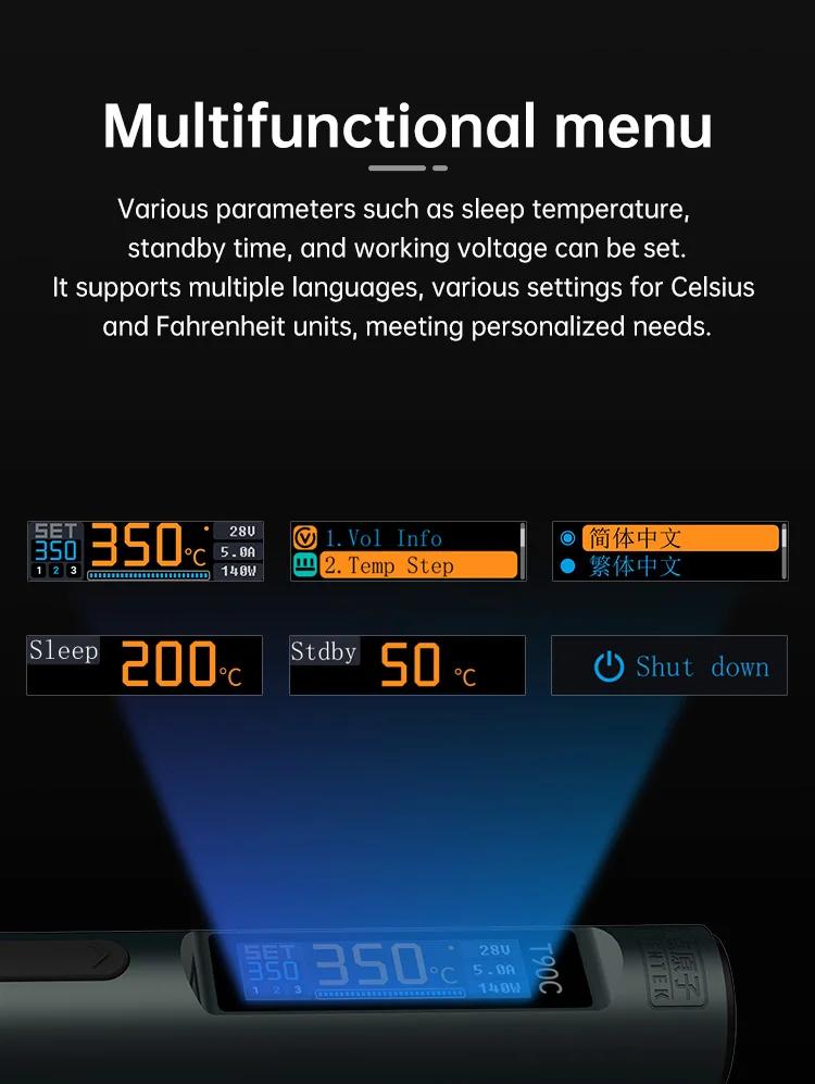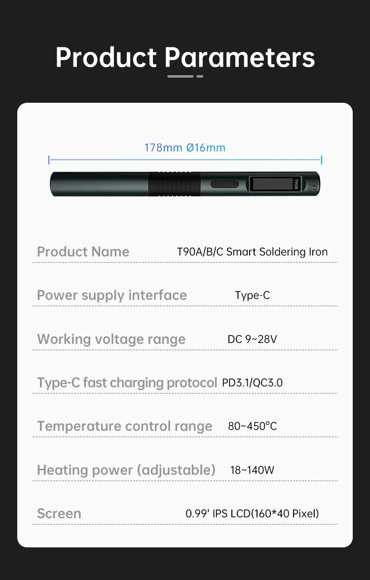 T90C (T65 Tip) Portable Intelligent Soldering Iron IPS LCD Screen 18-130W Soldering Pen with PD 140W Adapter
