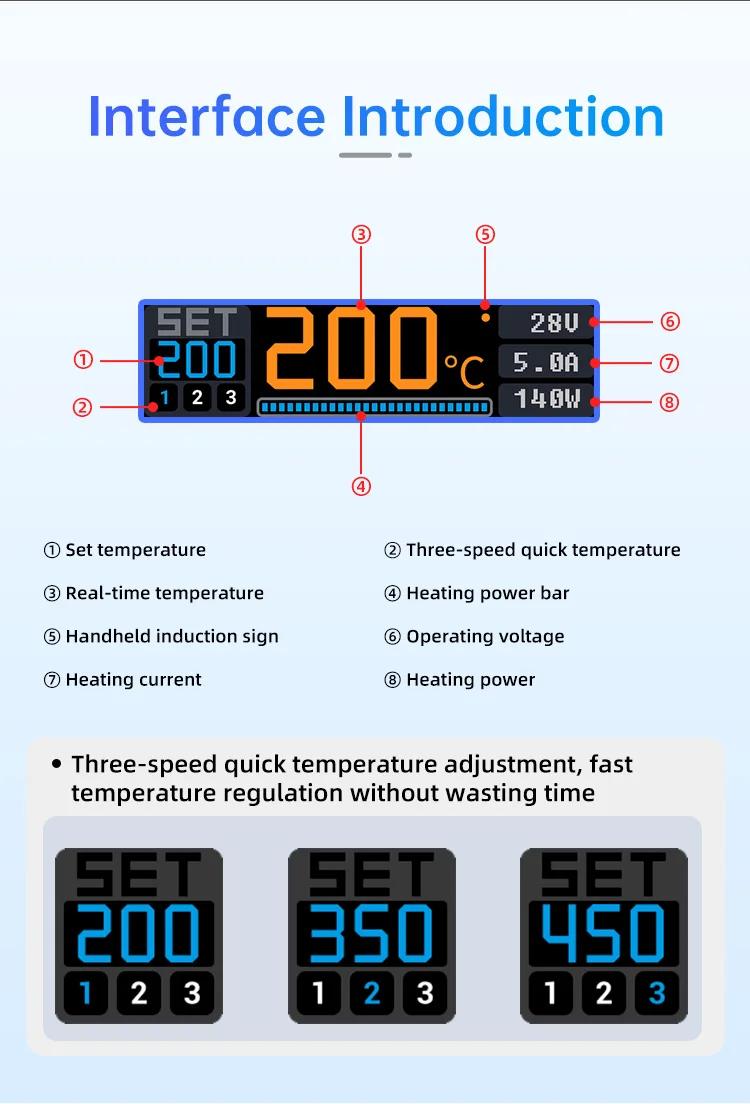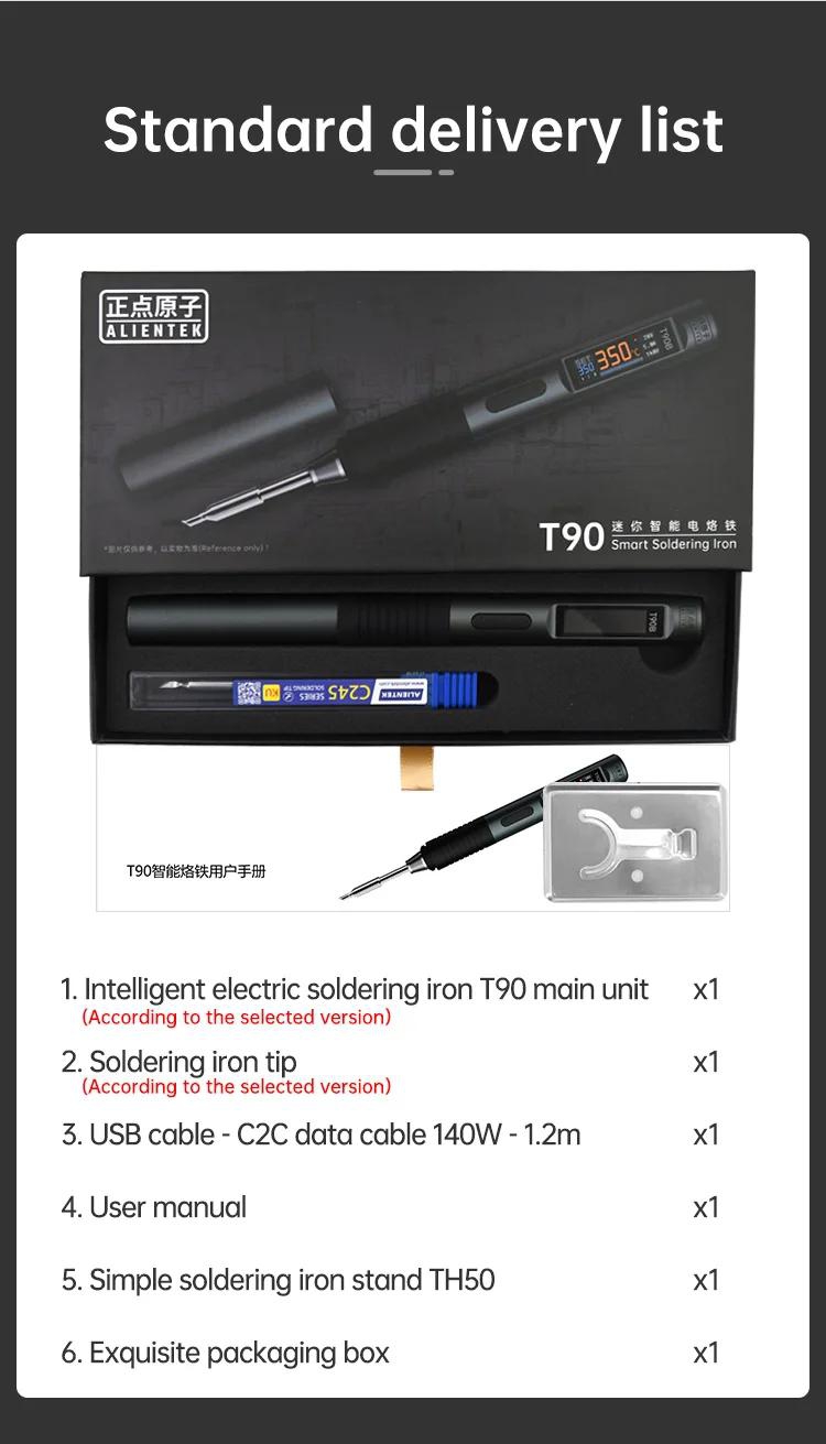 T90B (T245 Tip) Portable Intelligent Soldering Iron IPS LCD Screen 18-140W Soldering Pen with PD 140W Adapter + T245-K/I/IS Tips