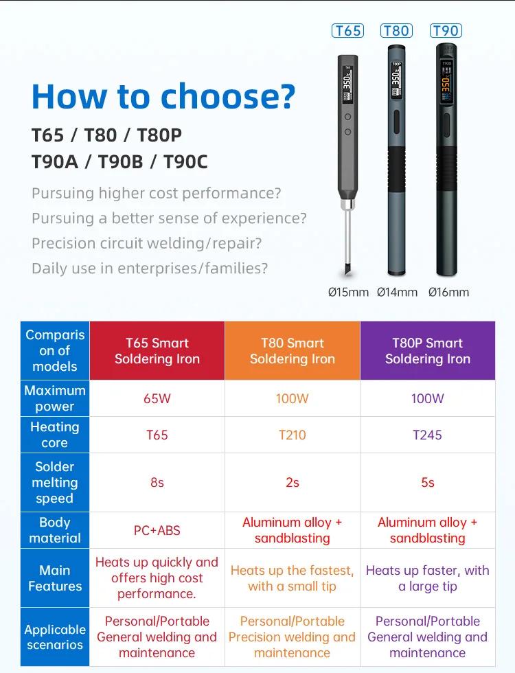 T90C (T65 Tip) Portable Intelligent Soldering Iron IPS LCD Screen 18-130W Soldering Pen with PD 140W Adapter and T65-KU/BC2 Tips
