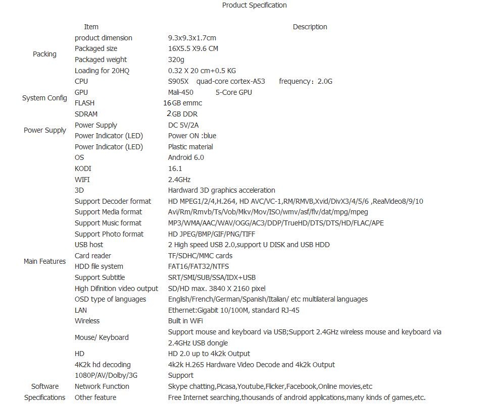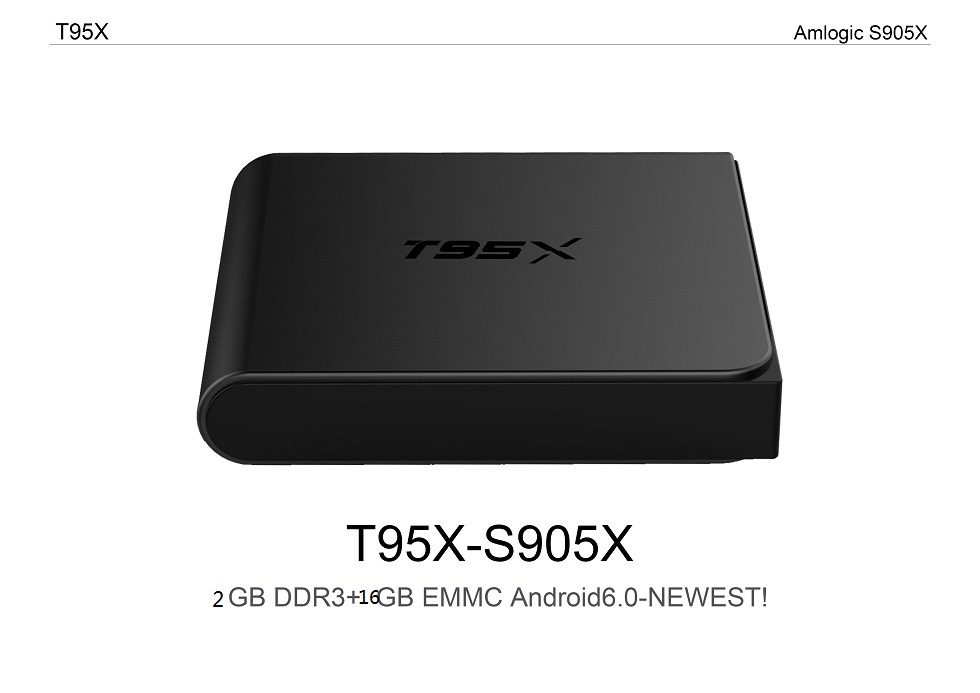 T95X Android 6.0 TV Box Quad Core Amlogic S905X 2G+16G 100M H.265 KODI DLNA Airplay Media Player