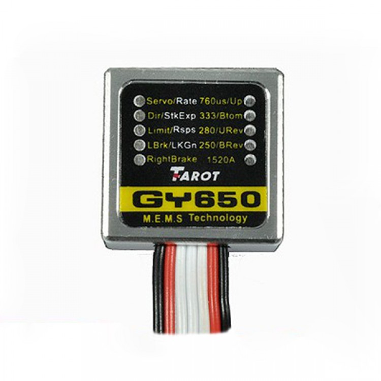- GY650 this Gyro uses MEMS Technology,  ultrathin hell sealed, powered design within dustproof and waterproof.