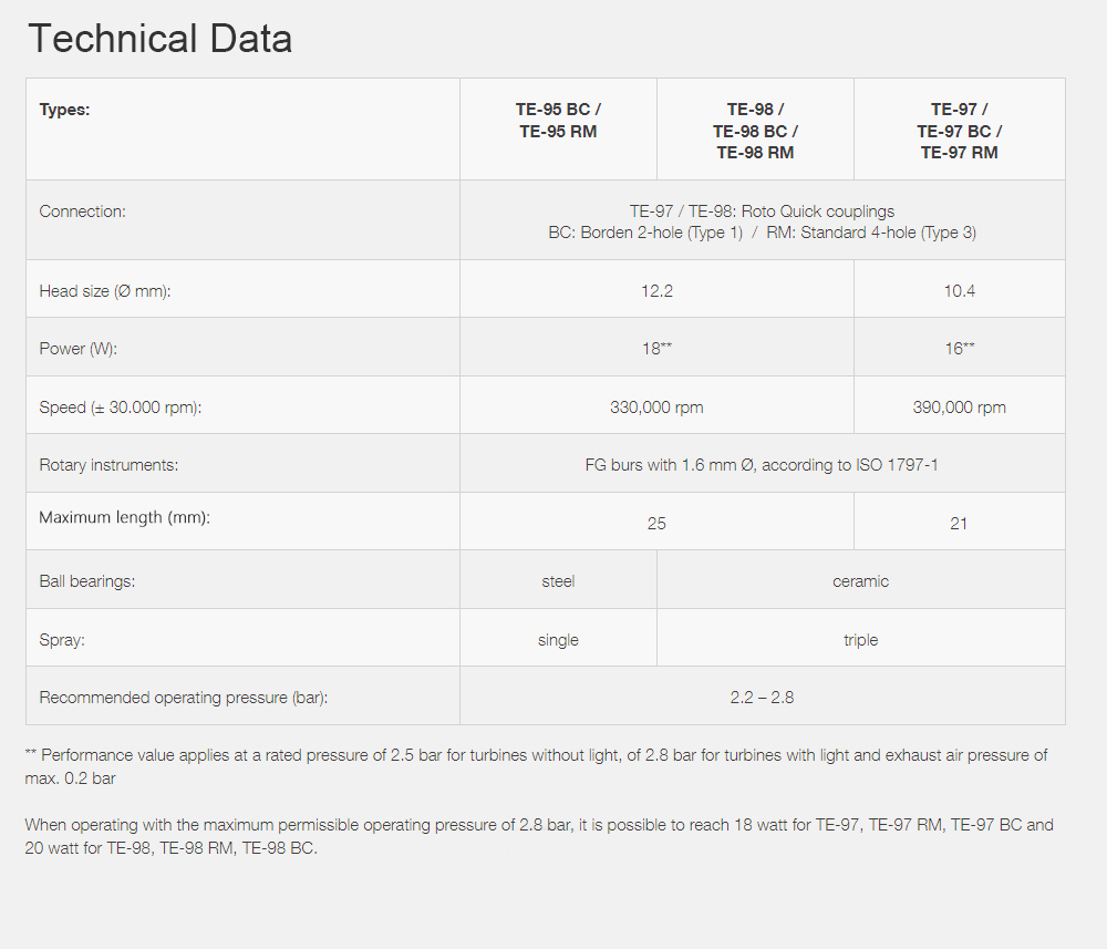 * 1 × TE-95 RM Dental Turbine Handpiece