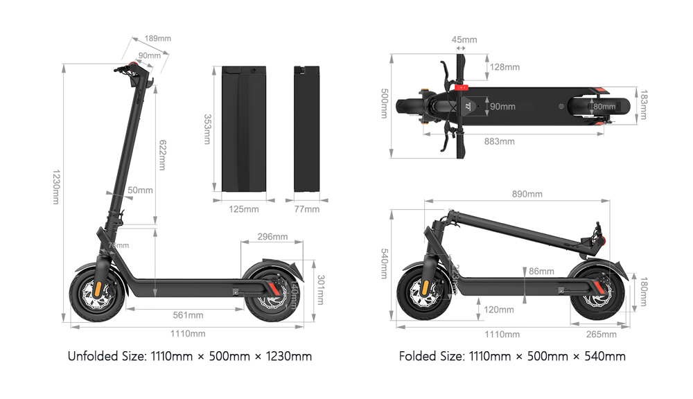 * Folded Size: 1110mm × 500mm × 540mm