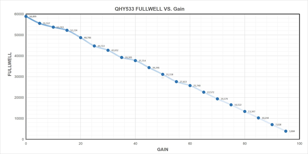 - Full well capacity (1x1, 2x2, 3x3): 58ke-