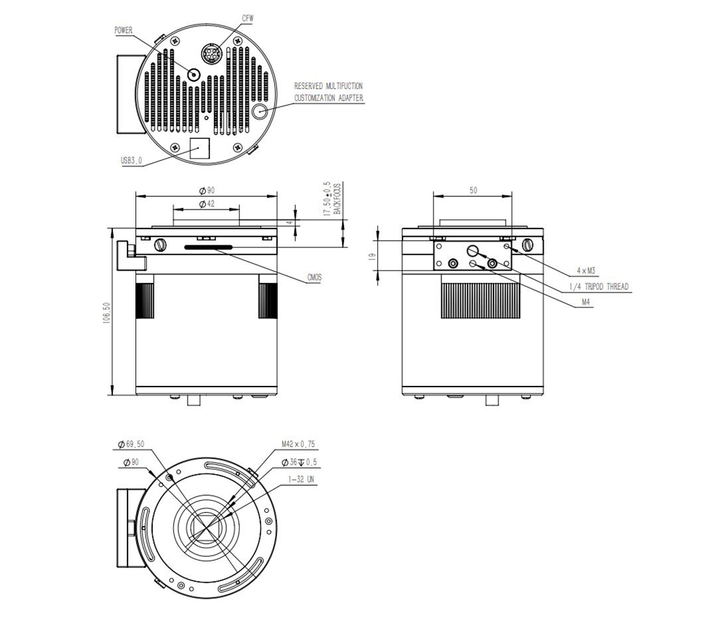 - Telescope Interface: support C-Mount or M48 (with adapter)