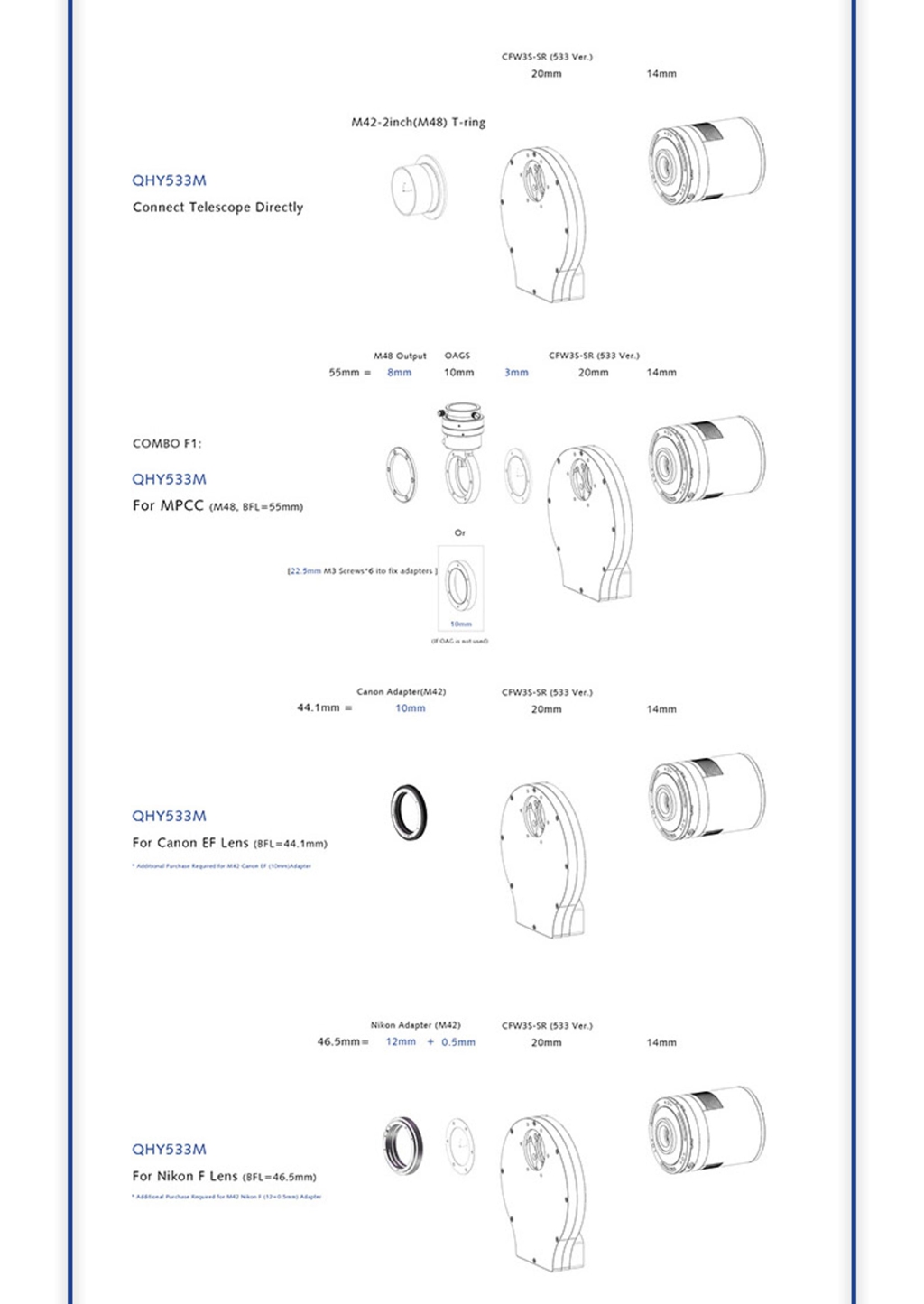 - Both QHY533M/C comes with an additional adapter for tripod interface. This makes it easier to shoot with DSLR lens.