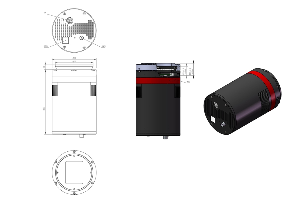 - Cooling system: long exposures (> 1 second) typically -35℃ below ambient; short exposure (< 1second) high FPS, typically -30℃ below ambient (Test temperature +20℃)