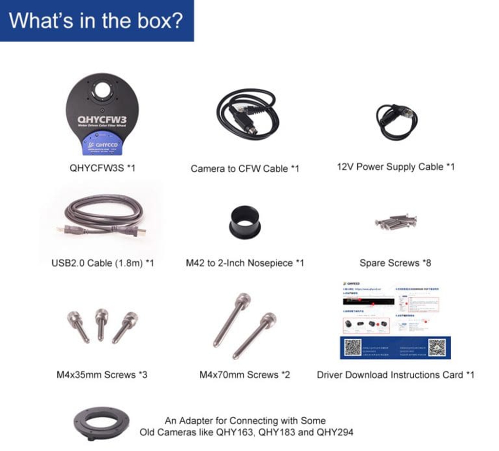 - QHYCFW3S-SR/QHYCFW3S-US is optional. Please leave a message about the model you want before payment.