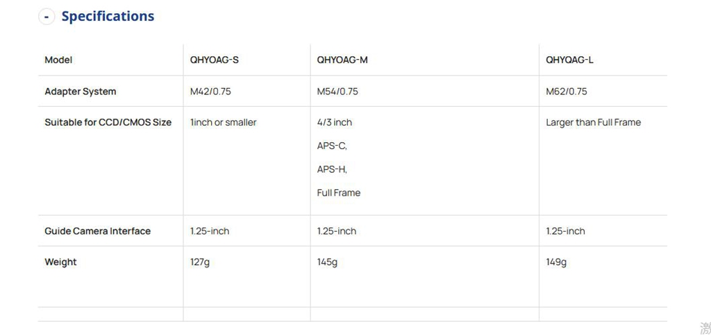 - QHYOAG includes a precision spiral focusing device, compatible with a 1.25-inch eyepiece interface, which can perfectly dock with our guiding camera. Achieve shorter optical path length. The focusing process is comfortable, with a locking screw that can lock the focus after focusing.