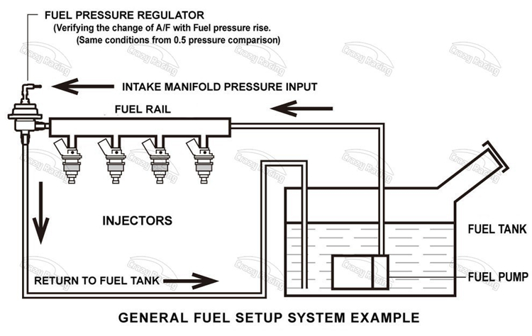 When the engine is idling low the fuel flow used compared to full power is only approx 15%. Therefore most of the fuel that is sent by the pump will be returned to the fuel tank. When the engine is tuned the optimum efficiency can be obtained with the optimum mixture of A/F ratio. When the fuel pump is too large and the regulator is not strong enough to handle the excess fuel that it is receiving it will then not be able to regulate the flow to allow the fuel to return to the tank. This will cause the fuel pressure to be too high and too much fuel to be pumped into the engine which will lead to over enrichment and poor fuel efficiency and a variety of problems will occur.