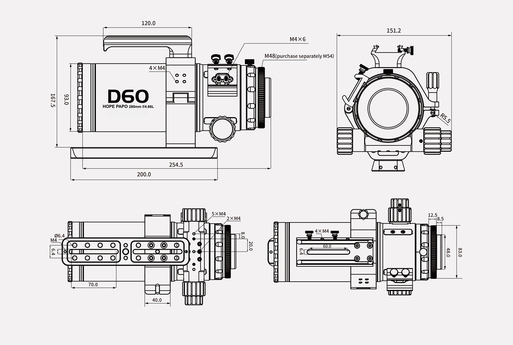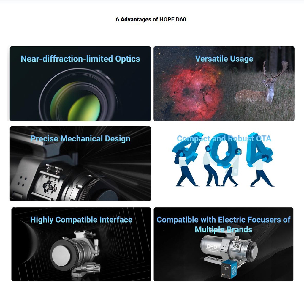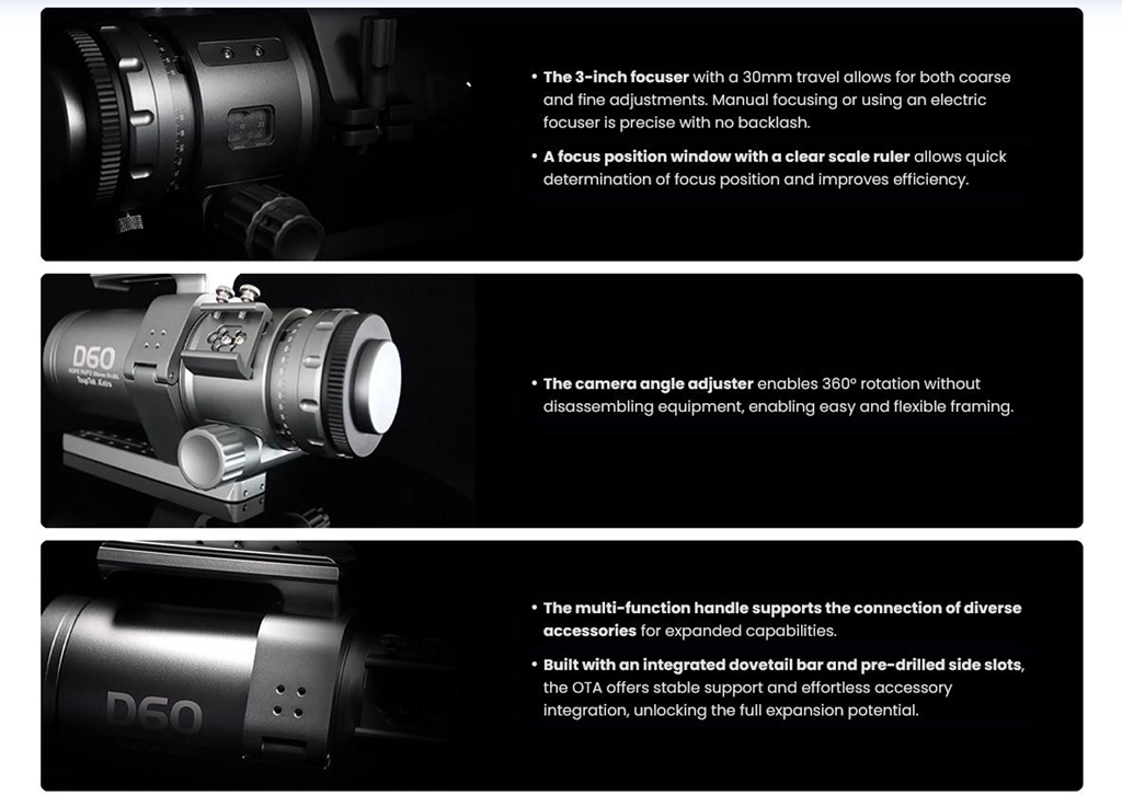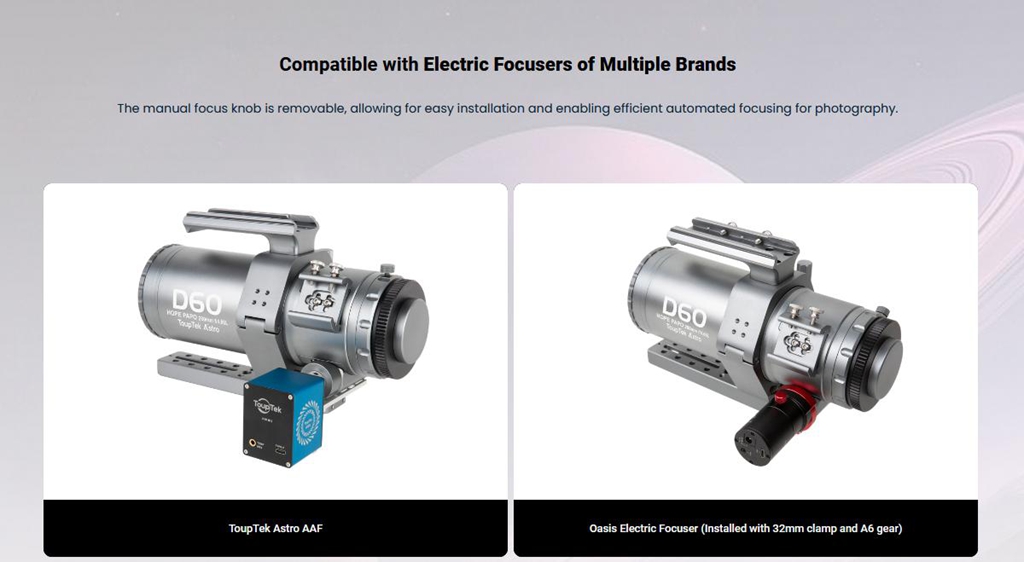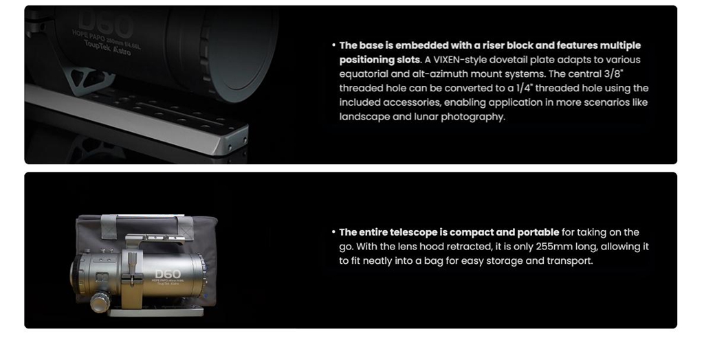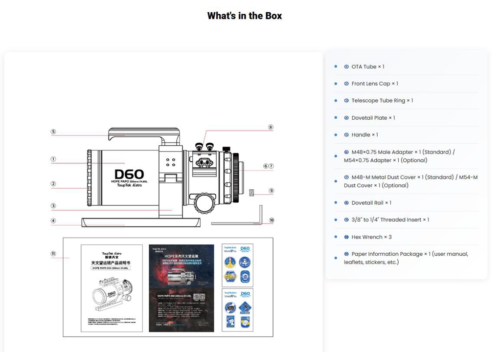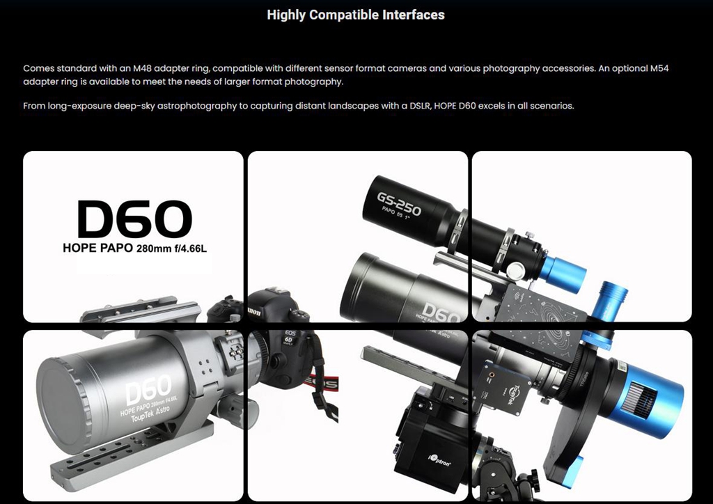 ToupTek Professional HOPE D60 60mm Aperture PAPO f/4.66 Astronomical Telescope Built-in 3-inch Focuser