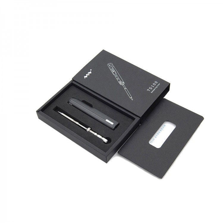 - Features:TS 100 mini iron is a heat type intelligent CNC,lightweight design,easy disassemble control handle,energy-efficient TS-B2 heating end,simple control interface.It is a must tool for electronic engineers.It can work DC12-24V,OLED screen display,button temperature control, intelligent temperature control, external independent power supply.In 19V/40W state,heats up to 300 degrees centigrade in 10 seconds.