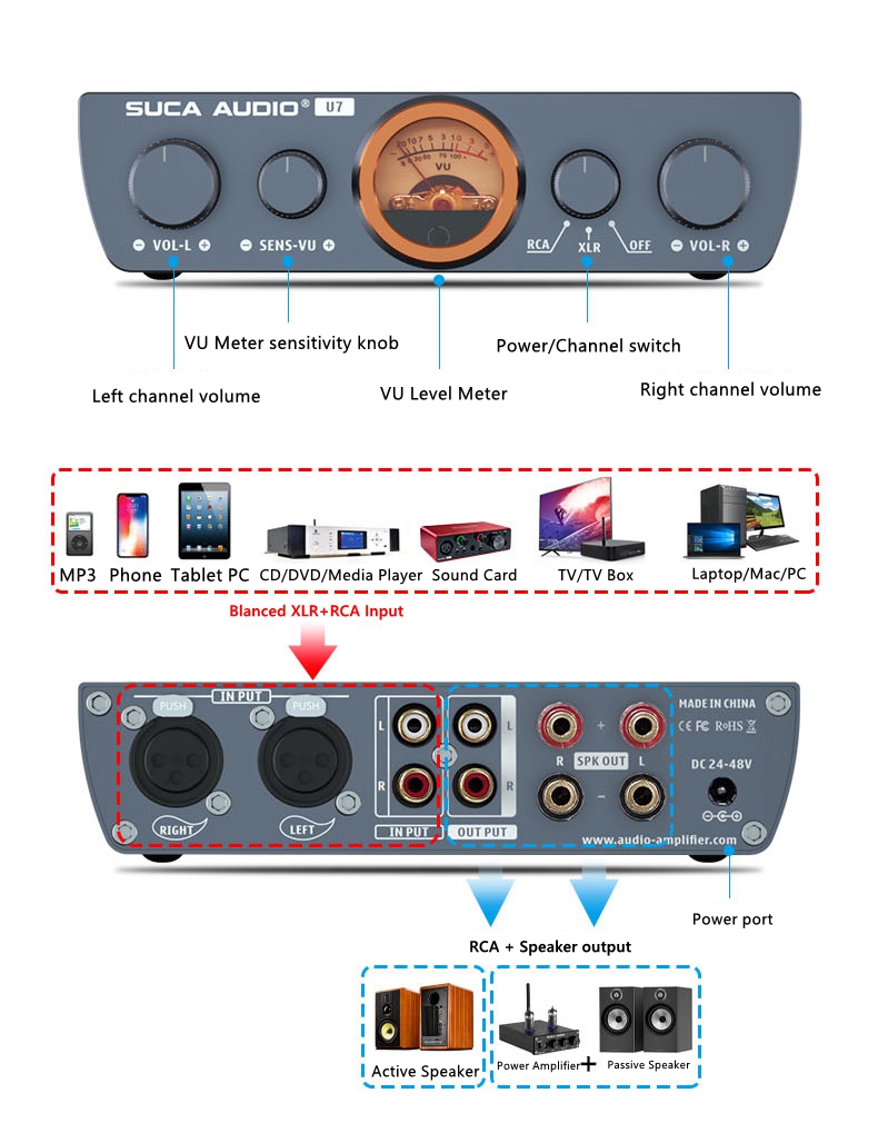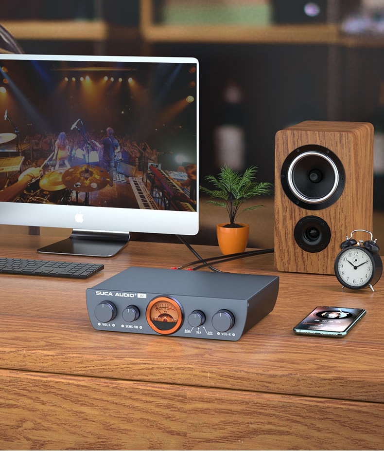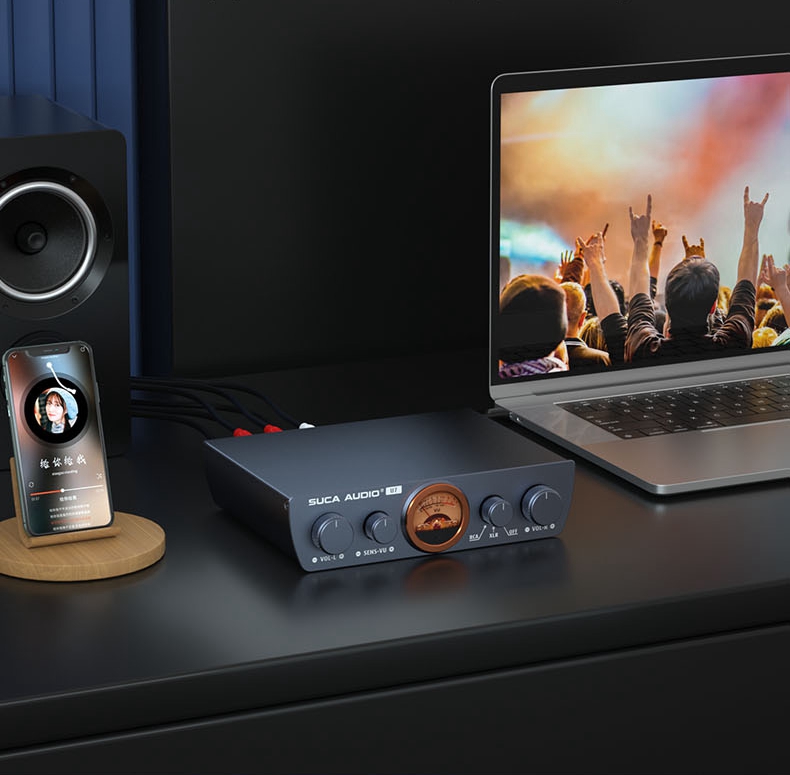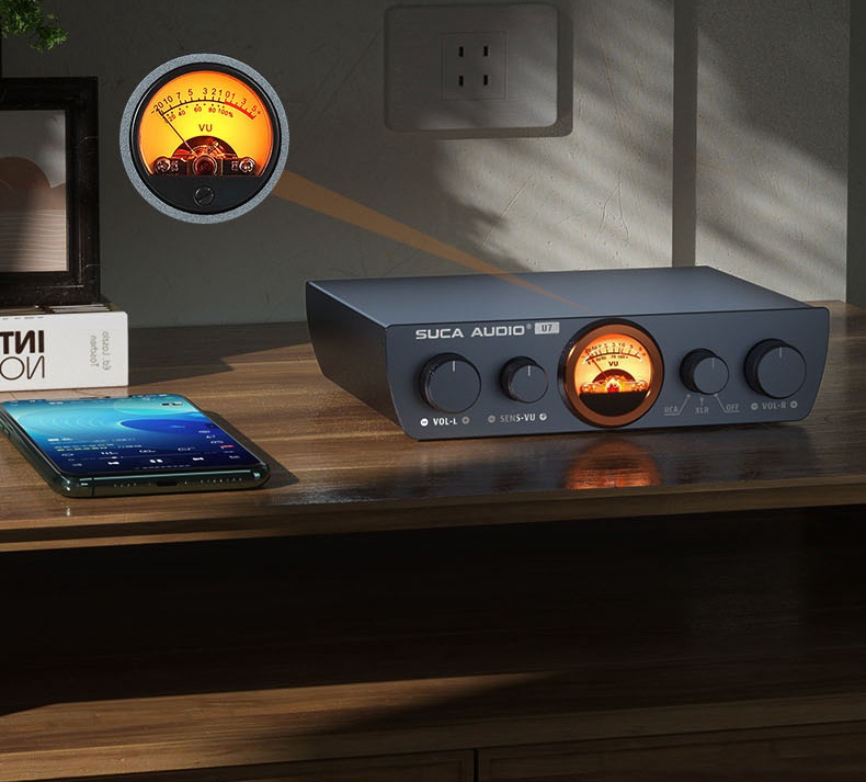 - The front panel adopts left and right channel volume balance + VU meter sensitivity knob, which can be controlled independently without affecting each other.