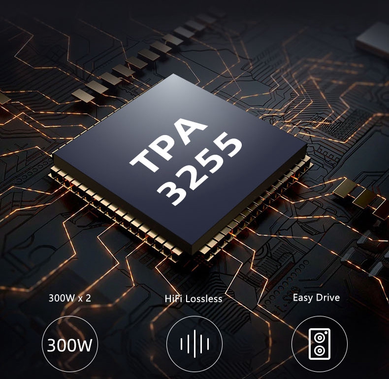 - 300W x 2 power can easily drive most of the 4~8ohm passive speakers