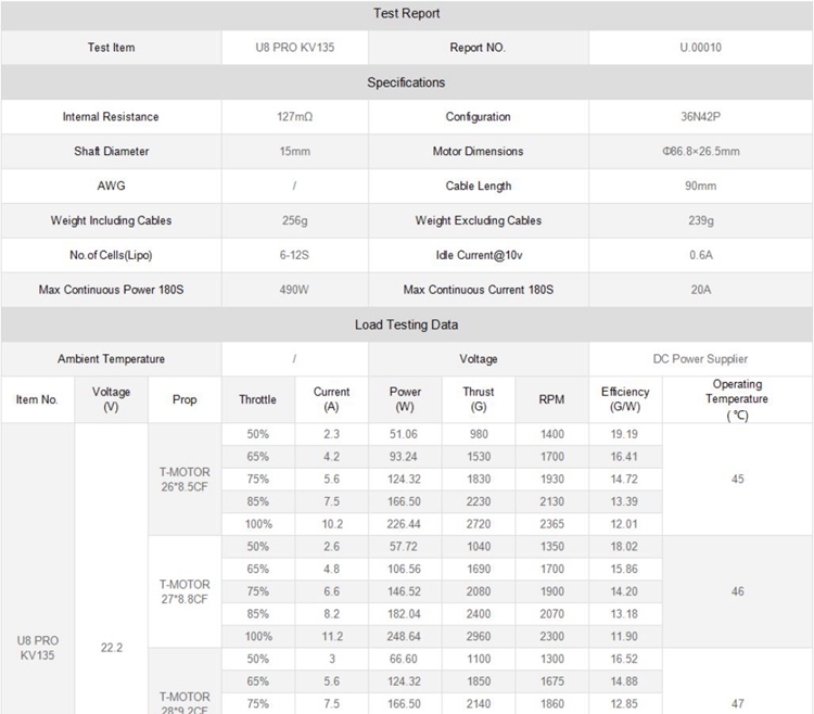 U8 PRO KV135 RC Airplane Brushless Motor Waterproof 6-12S for RC Multicopter Multirotor Drones