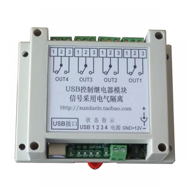 - USB control, four hongfa relay. USB communication part and relay part fully adopts photoelectric isolation, fully guarantee the computer safety,eliminating all inteference, with control software and source code