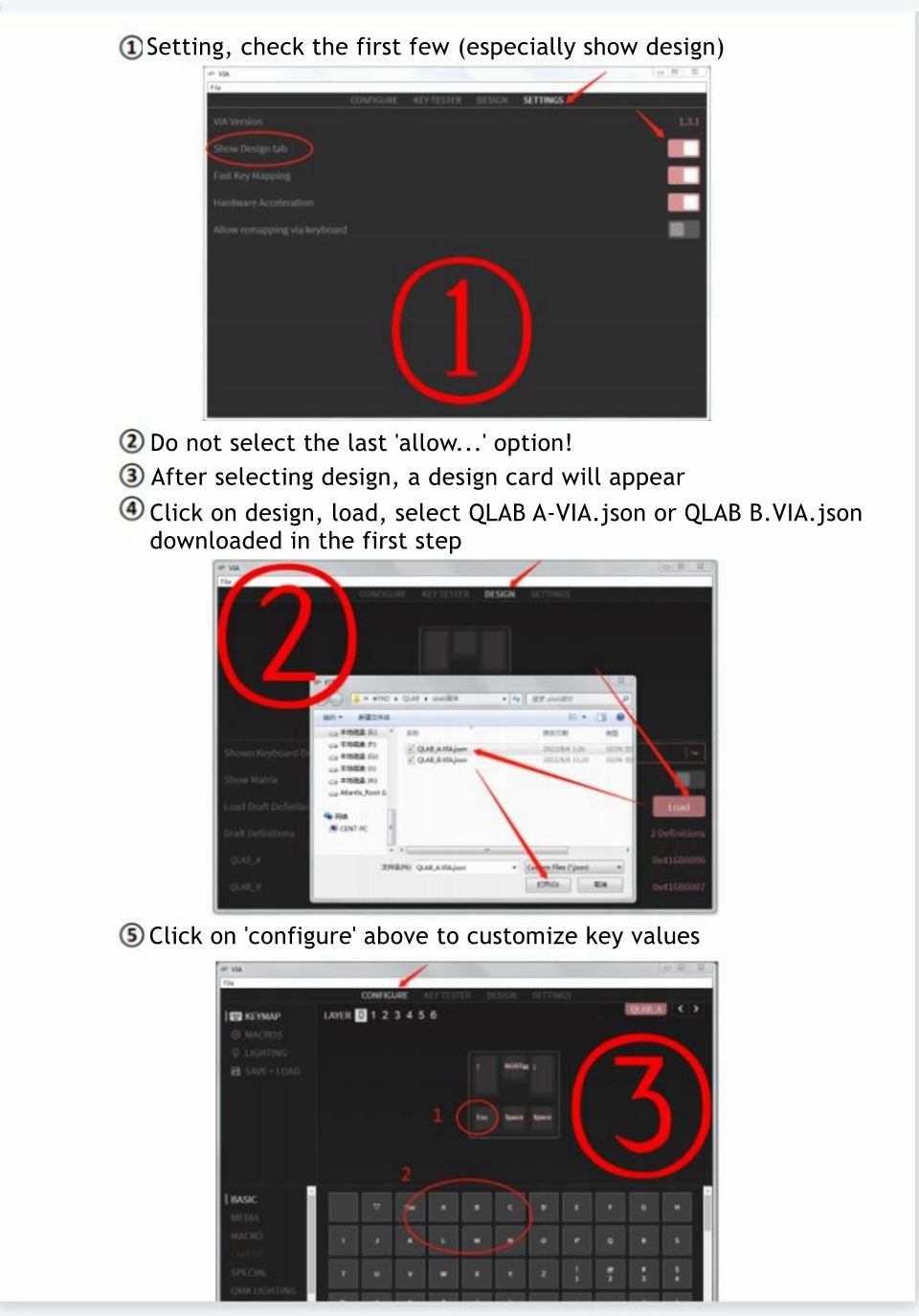 ④ Click on design, load, select QLAB A-VIA.json or QLAB B.VIA.json downloaded in the first step; (The left side is A, and the right side is B)