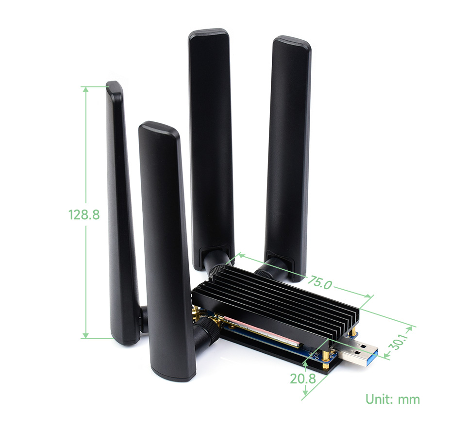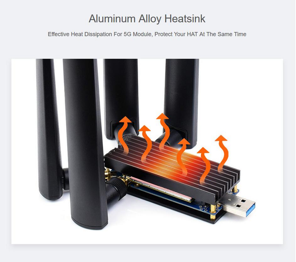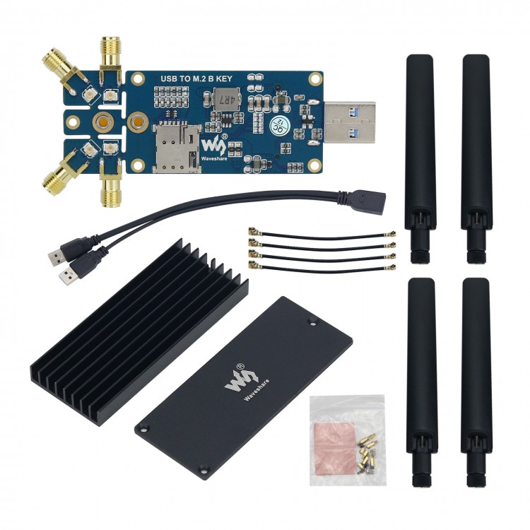 USB TO M.2 B KEY 3/4/5G Module DONGLE Expansion Board with Quad Antenna and Aluminum Alloy Heatsink