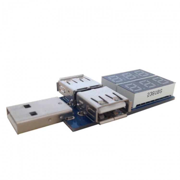 USB voltage and current detection and display module, apply SCM embedded technology, Collecting data which is accurate, stable and reliable. The voltage and current can be shown by three digital tube respectively.It is widely used with mini-USB port measurement.