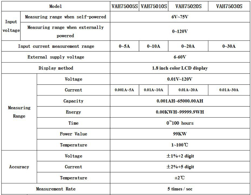 VAH75005S Multimeter Ammeter Voltmeter 0-120V 0-5A w/ Hall Sensor 1.8" Colorful Screen