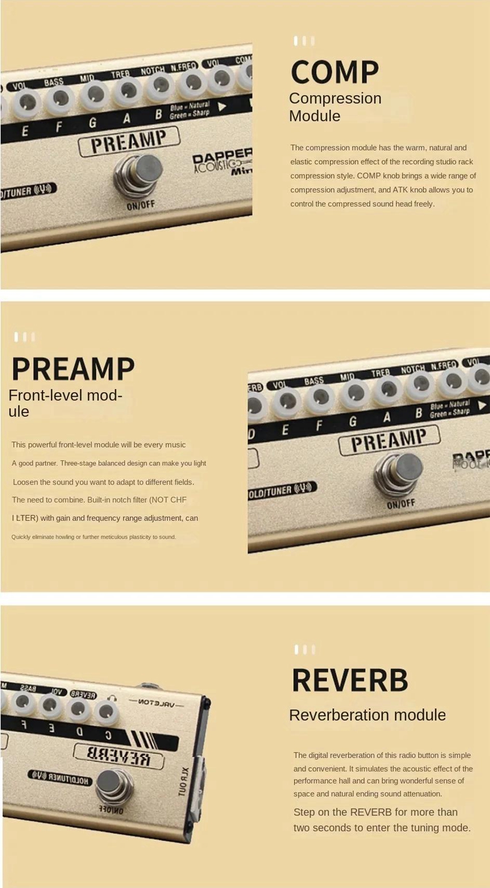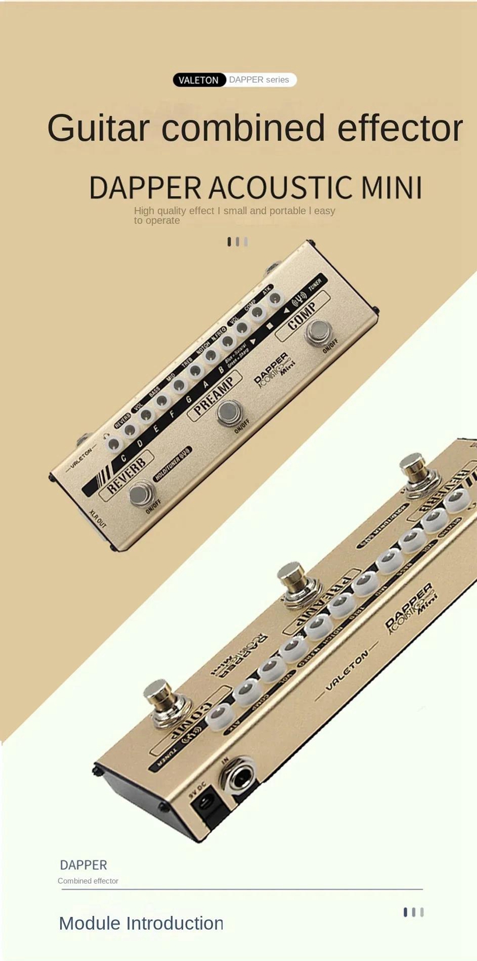 VALETON Dapper Acoustic Mini Guitar Effects Pedal Compression/Reverb Preamplification Comprehensive Effects Pedal