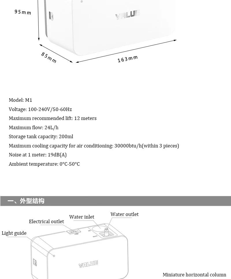 VALUE M1 100-240V 30000btu/h Air Conditioning Condensate Water Super Quiet Drainage Pump 200ML Water Storage