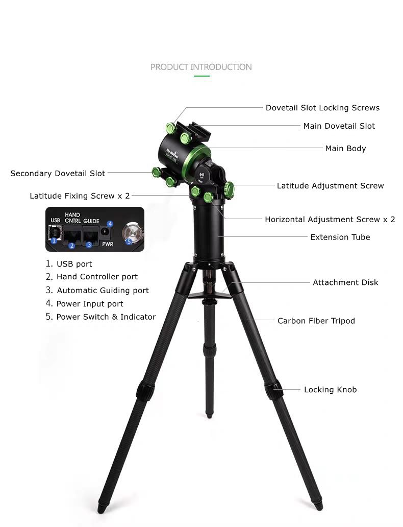 - GOTO control: for Synscan pro APP or Synscan handheld controller (optional)