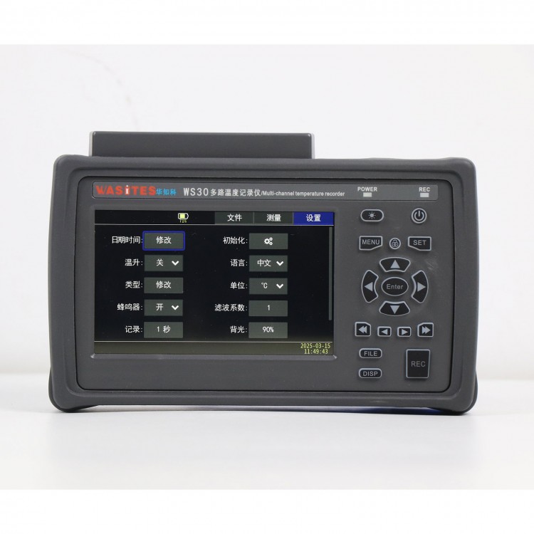 WS30 multi-channel temperature recorder uses a 32-bit high-speed CPU for data processing and a 5-inch industrial display. It supports K, J, E, T, N, S, R, and B type thermocouple inputs, with three display modes: list, curve, and bar chart, allowing users to read parameters more intuitively. It features comprehensive functions to meet the measurement needs of production lines, laboratories, and R&D.